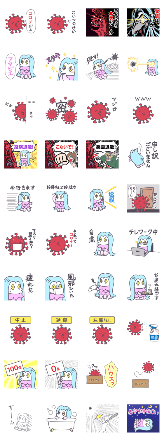 コロナとアマビエによる愉快でちょっとおかしいスタンプです。毎日使えるもの満載!