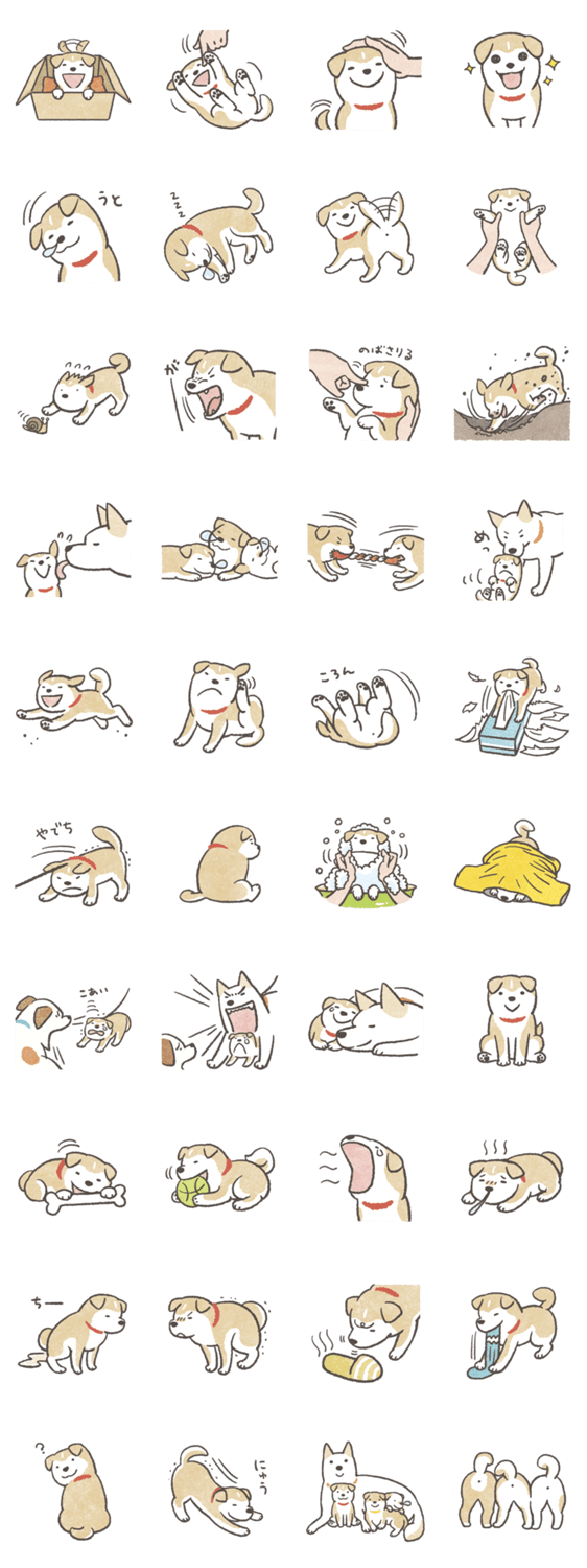 とんだりはねたりお昼寝したり!ちっちゃいのばされわんこ、「のばされこわんこ」のスタンプです。ちっちゃくても、のばされています。