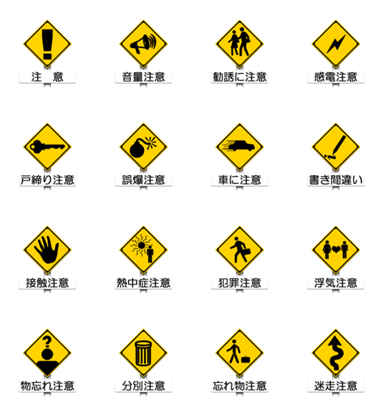 日本の道路標識をアレンジしました。注意喚起のみ集めました。