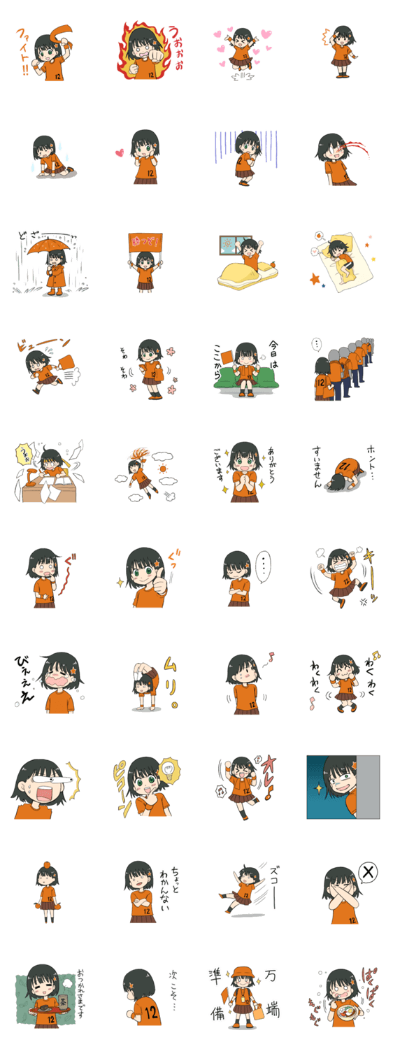 オレンジ色のサッカーチームを応援する女子サポーター松原ミホのスタンプです