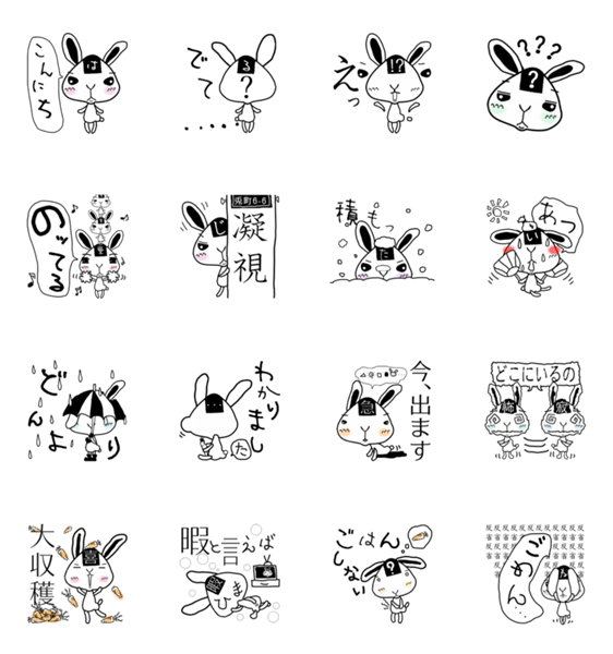 おむすびとうさぎが合体した【おむすびっと】が 日常(?)で使える言葉を呟いたスタンプです。