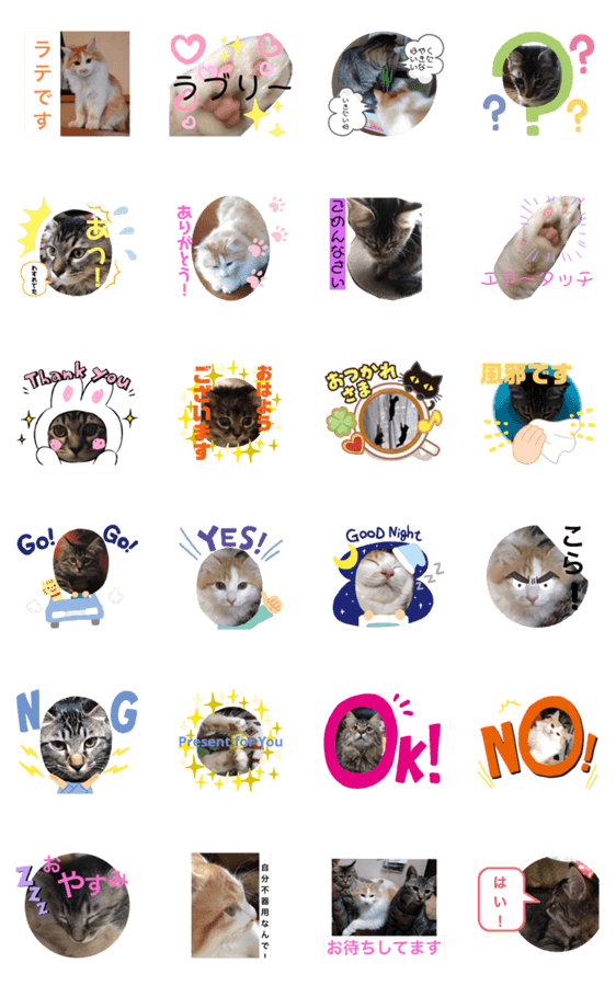 | スタンプ説明 | はじめまして、ラテです。嵐の夜にモモとムギと一緒に拾われました。 |
