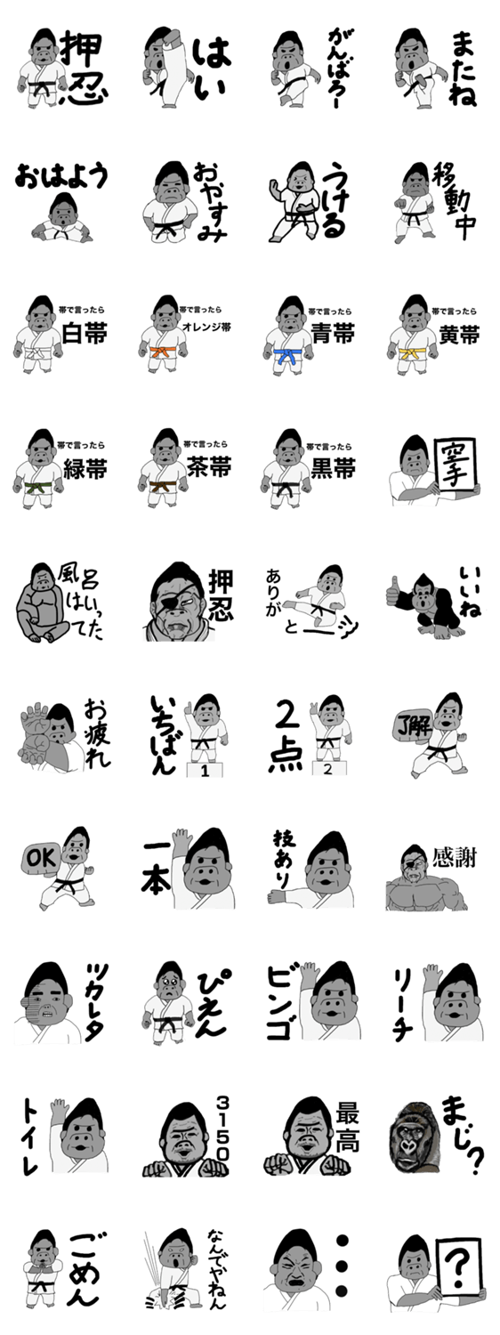 このスタンプではゴリラが空手をしています。