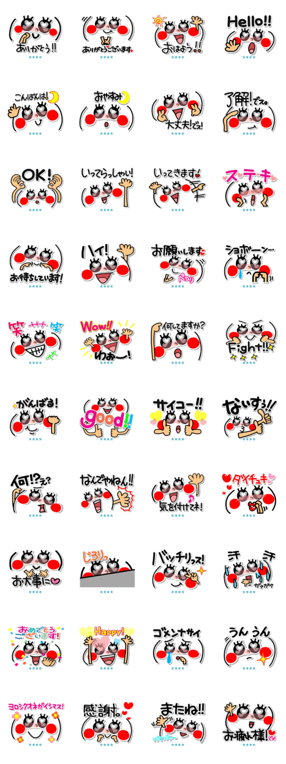 | スタンプ説明 | 可愛いリアクション。(シンプルだけど愛嬌のある瞳でHAPPYを伝えたい時に使えるスタンプ。) |