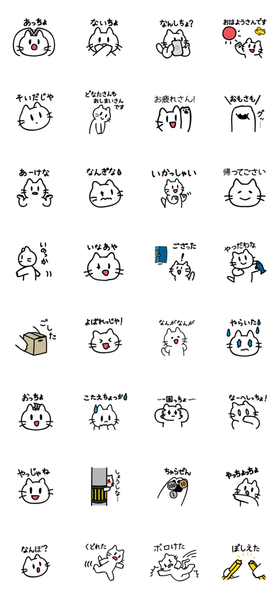 白ネコのあいうえお・・・ってるスタンプ