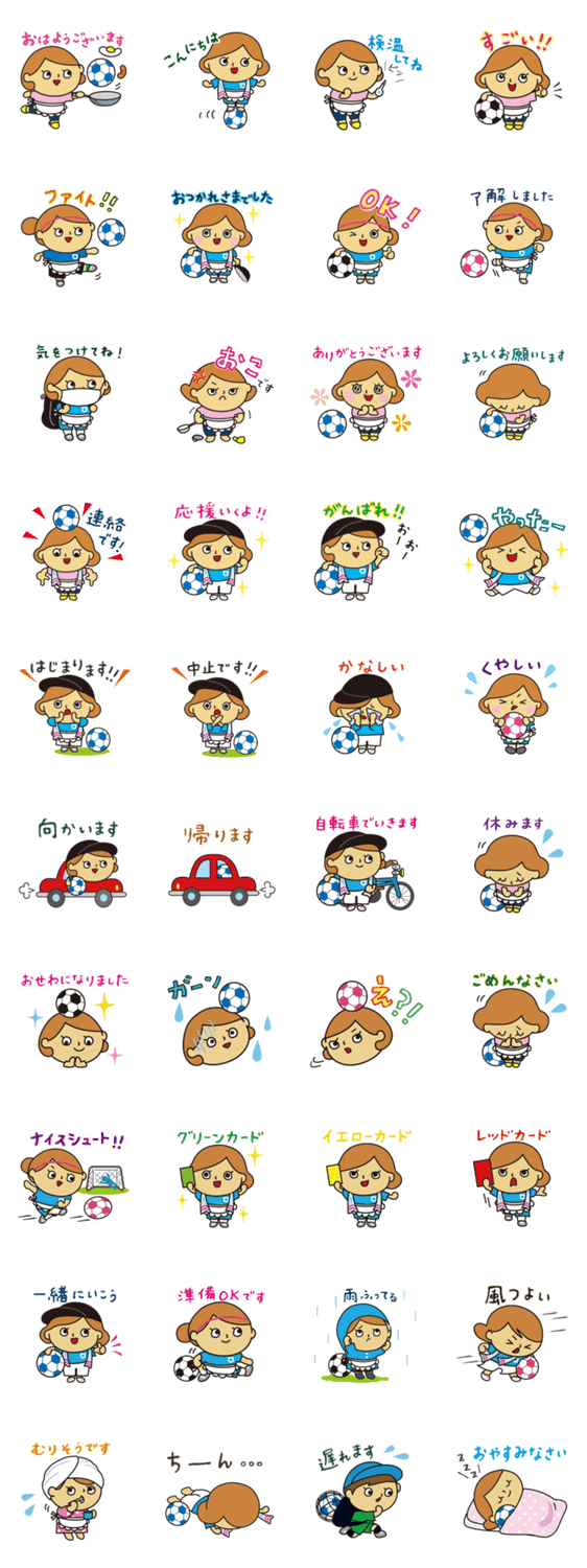 サッカーを頑張る子への声かけや、サッカーをやっているママ・サーカーママ仲間と毎日つかえるスタンプです。