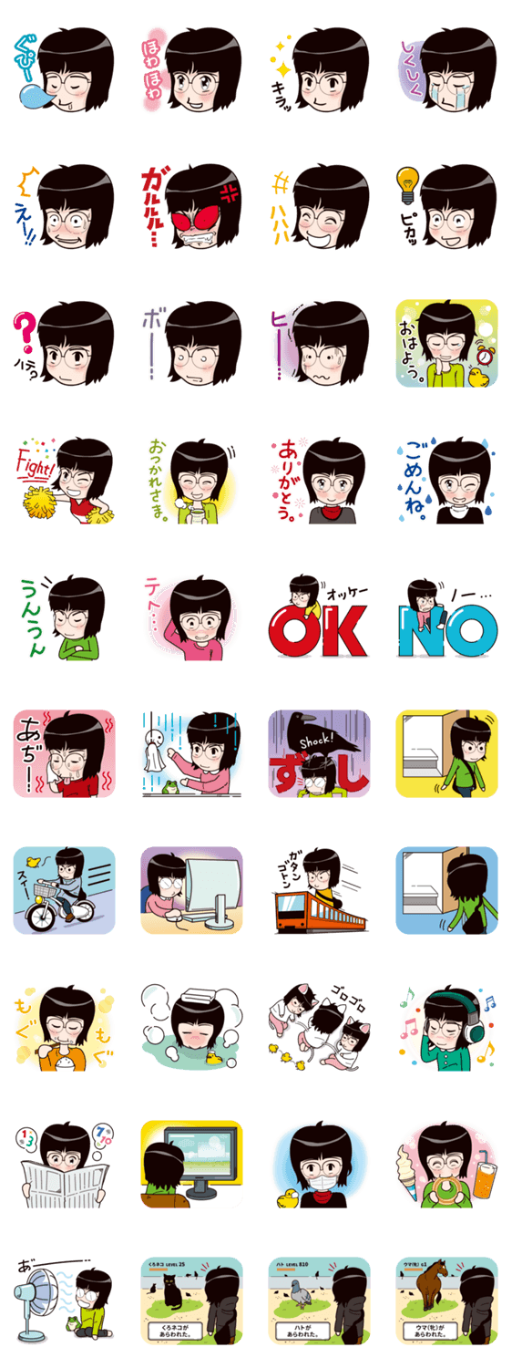 めがねっこさんの日常スタンプ。 動物だいすき、スイーツだいすき! 笑顔がカワイイめがねっこさん。