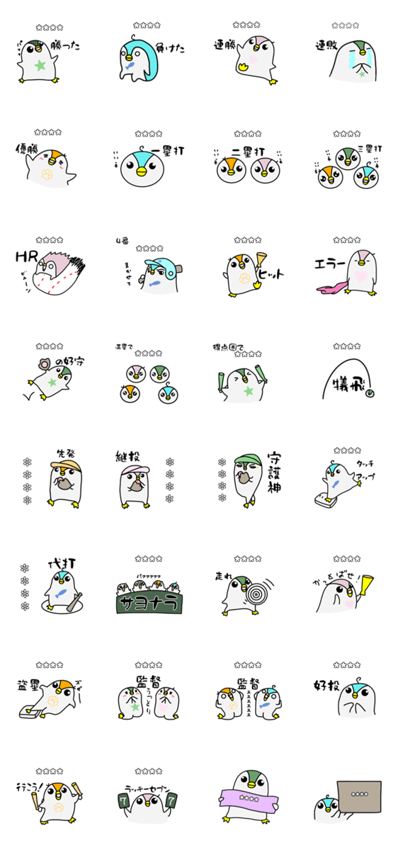 野球が好きなペンギンさんたちです。野球を見てるとき、野球をするとき、南極に行くとき、使ってやってください。