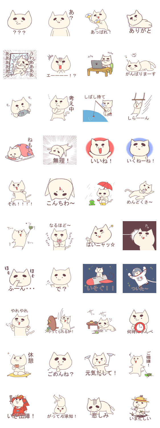 まゆげがちょっと逞しいネコのだらだらした日常スタンプです。