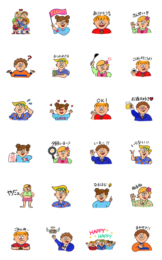 | スタンプ説明 | パパ、ママ、サブロウ、キャリー、ボブの5人家族です。 |