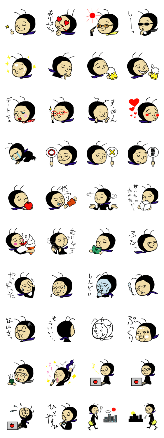 働きアリのアリコさん。都会で働くOLです。 恋も仕事も女子会も、楽しく頑張るアリコさんのスタンプです。