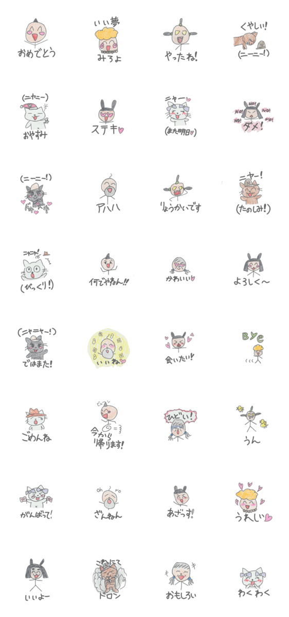 みわやんのオリジナルキャラクターがついにスタンプに! ぜひ使ってね。