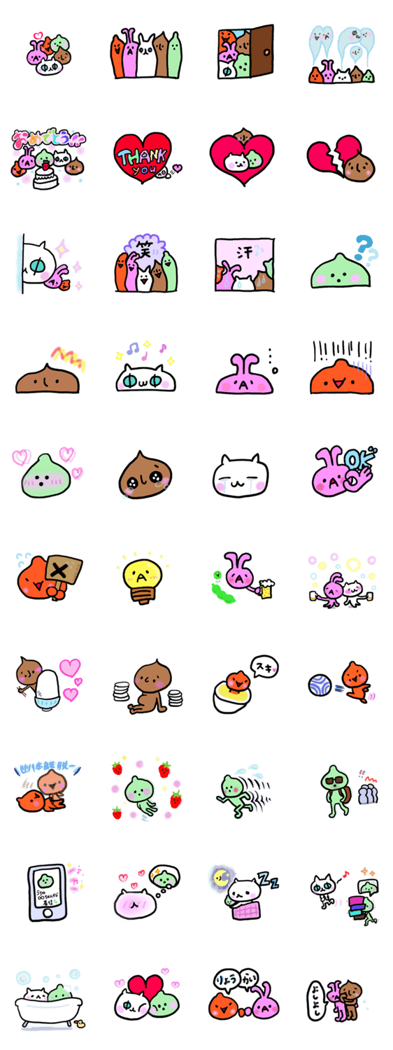 とっても仲良しな5人(5匹?)の、日常で使えそうなゆるカワ系スタンプです。