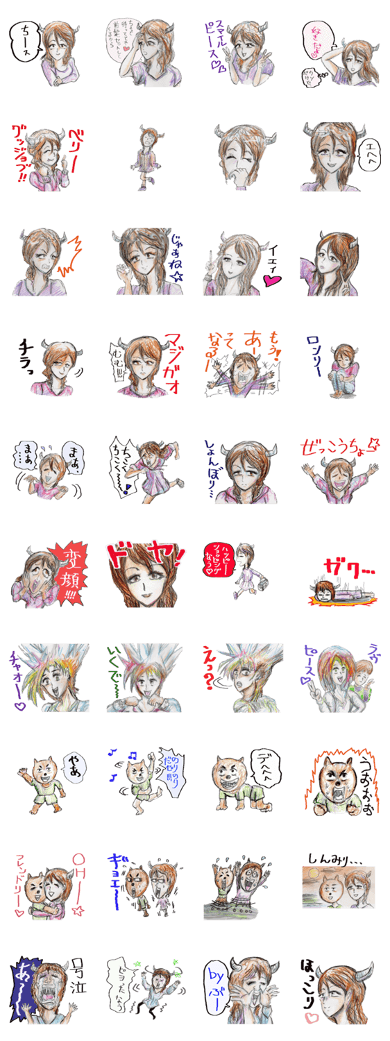 大石GONZO先生のマンガのキャラのスタンプ。小悪魔マヤと小熊のヤマちゃん
