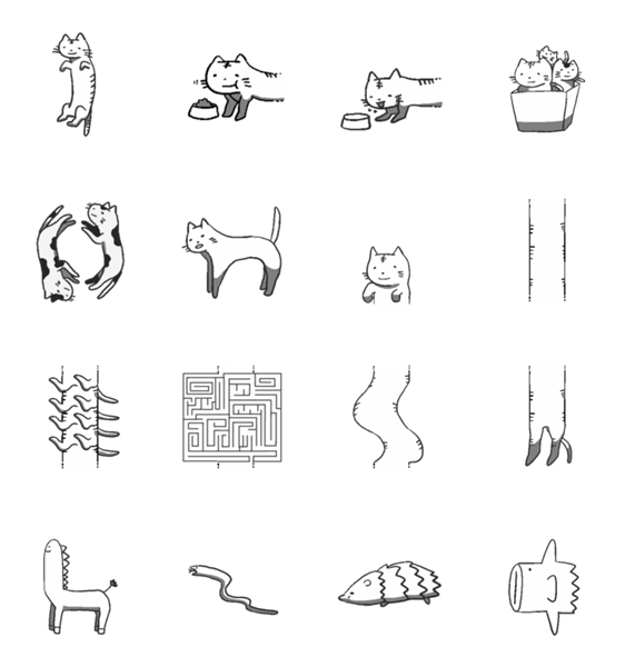 | スタンプ説明 | ねことどうぶつを描いてみました。 伸ばしたり、あそんだりしてください。 |