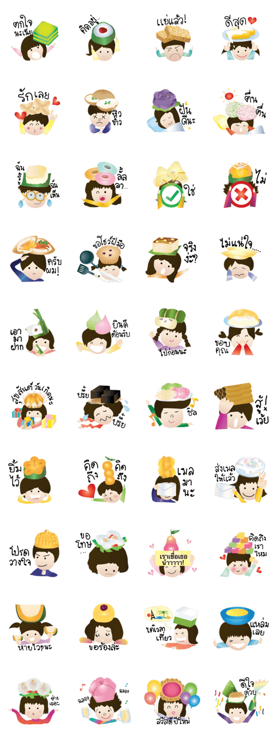 | スタンプ説明 | Let's put Ka-Nhom-Thai (Thai Sweet) on head and speak Thai !!! |