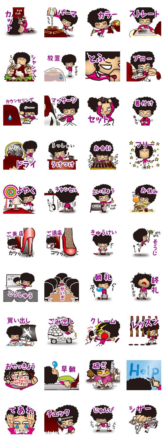 美容室や美容院で働いている人同士や、スタイリストさんやアシスタントさんと直接やり取りしているお客さんとのコミュニケーションスタンプ。