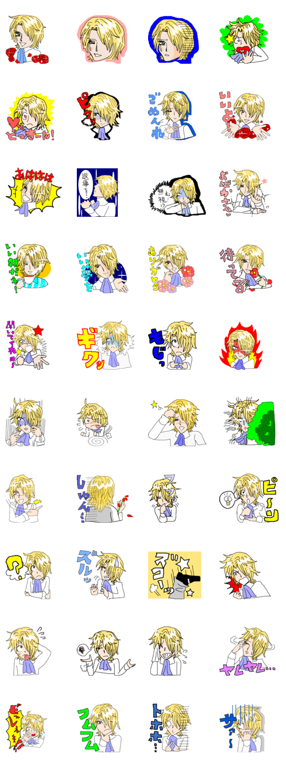 一昔前の少女マンガの男の子です。ちょっと古いリアクションのスタンプです。