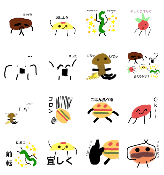 食べ物をモチーフにした、緩いスタンプ。いつものより、お安い!