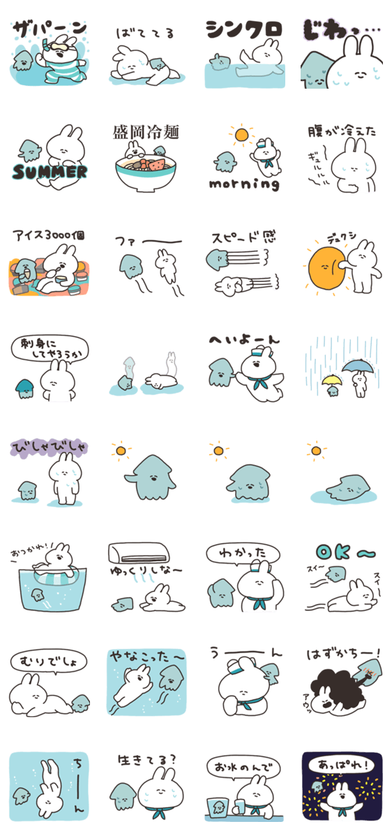 うさちゃんとイカの夏スタンプ -LINEスタンプマニア