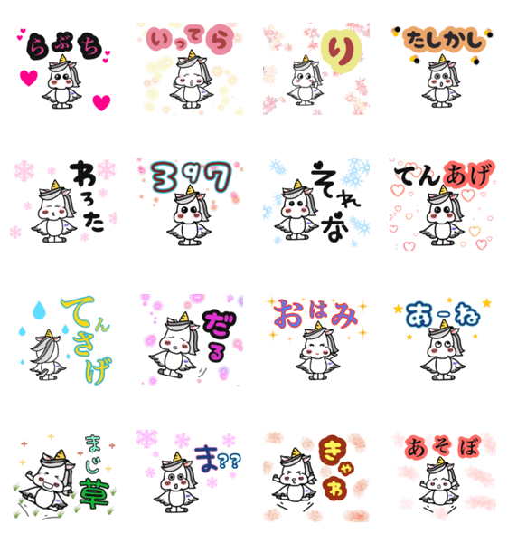 ユニコーンのわかちゃんの普段使いできるスタンプです。 今流行りの言葉にしてみました。