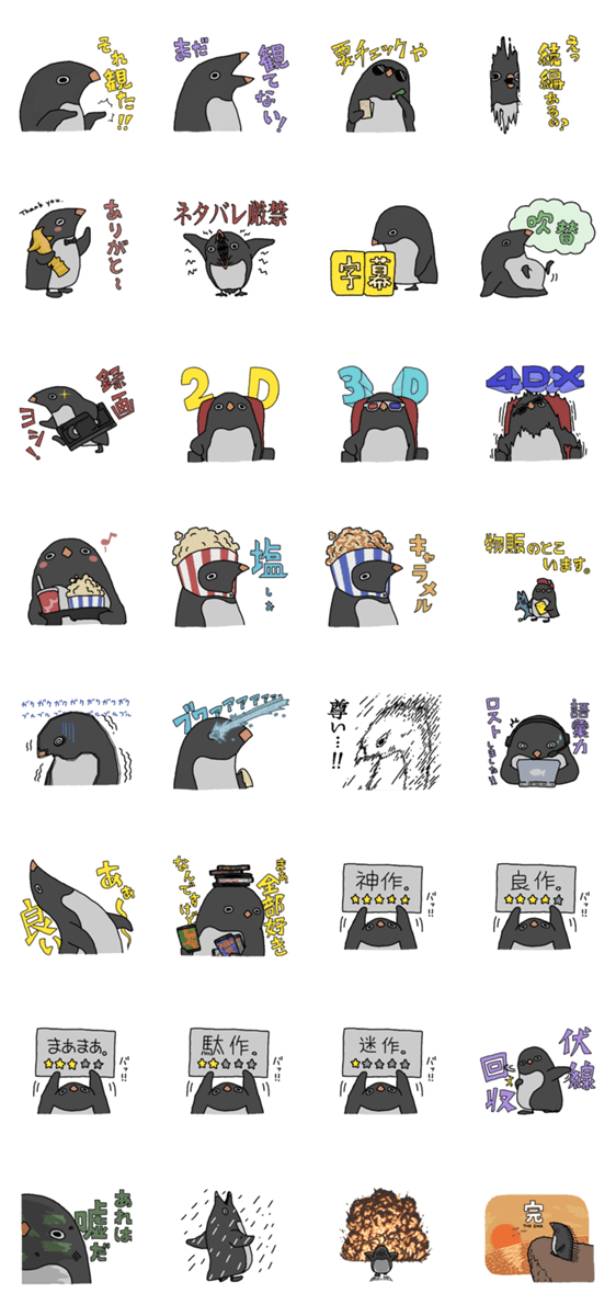 映画オタクのアデリーペンギンが映画を愛でるスタンプです。 語らいましょう、映画のすべて。