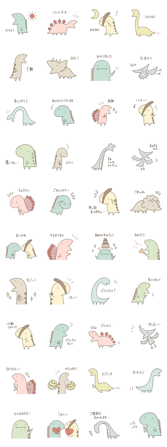 ゆるい恐竜たちのあいさつスタンプです。毎日使える基本の言葉が揃っています!恐竜シリーズ第22弾!(再販)