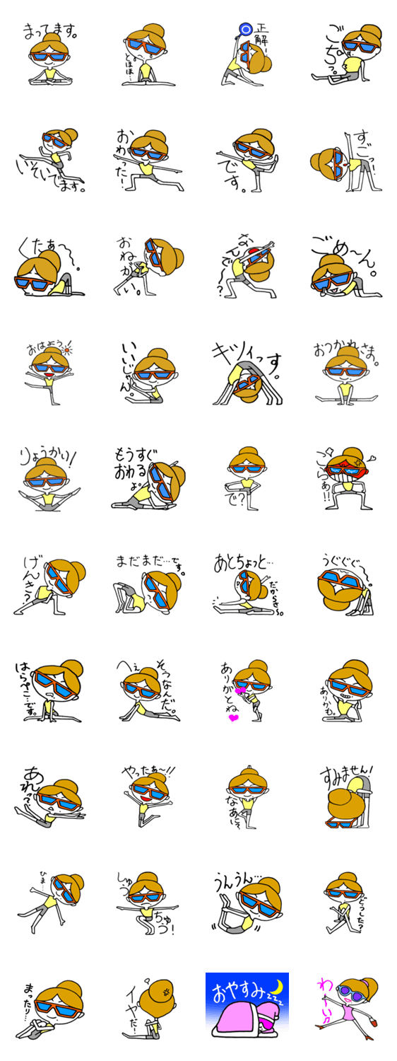 私の名前は「イッちゃん」と申します。大好きなヨガのポーズから、シンプルな会話や受け答えに対応した、使いやすいスタンプを作りました。