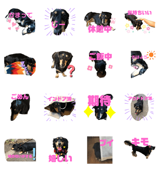 家族 かわいい スタンプ ミニチュア・ダックス