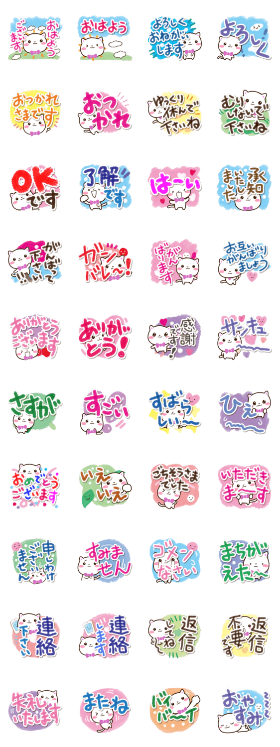 『シロネコすたんぷ』から『水彩画』編になります。文字を大きく水彩画風に仕上げました。カラフルで目立ちます。猫好きな方にぜひ。【かたこ】