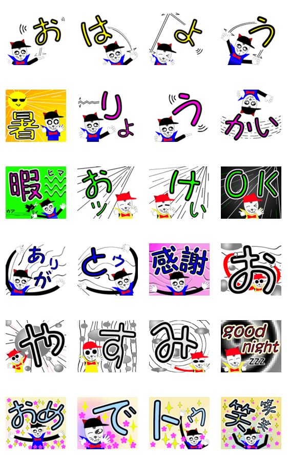 大きくて読みやすい挨拶を「キモイ奴」がお届けします。 スタンプ続けて送れば縦に挨拶できますよ。