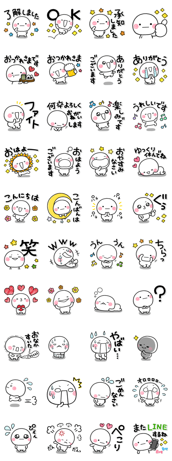 大人の方におススメ!大きな文字で見やすく、スタンプを使うときも大きな文字なので選びやすい♡しろまるのゆるゆるスタンプです。【作:いしいともこ】
