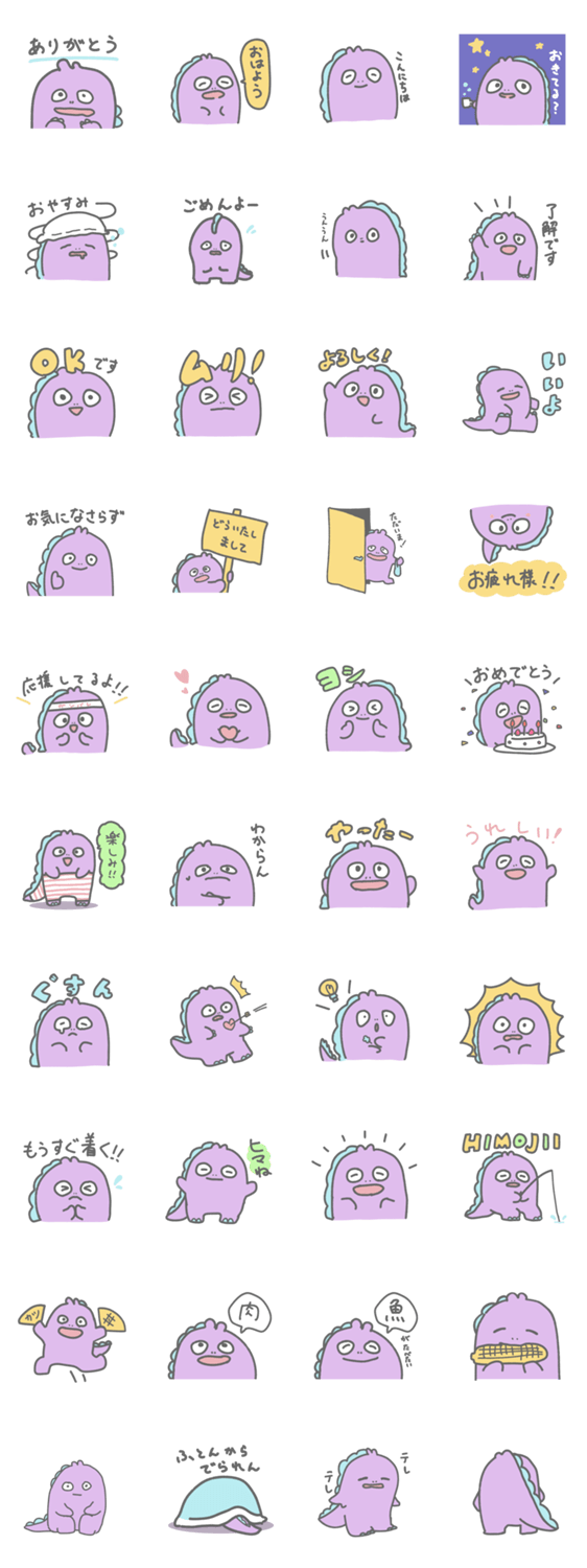 ドジでシャイな恐竜、ゆかごんのスタンプです。