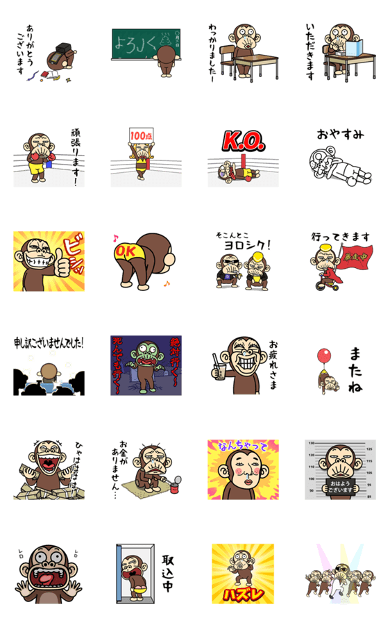 お猿さんの動くスタンプ13弾! 様々なキャラに扮したお猿さんがイラッと会話を盛り上げます。