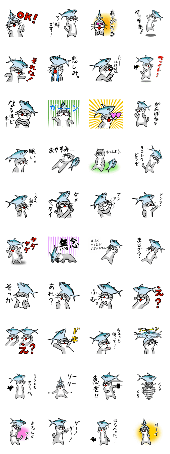 サバの頭を持つという、伝説のネコ(そんな伝説はない)がついに爆誕!相手に送ればクスっと笑いが。自由なノリで、普段使いにもバッチリです!