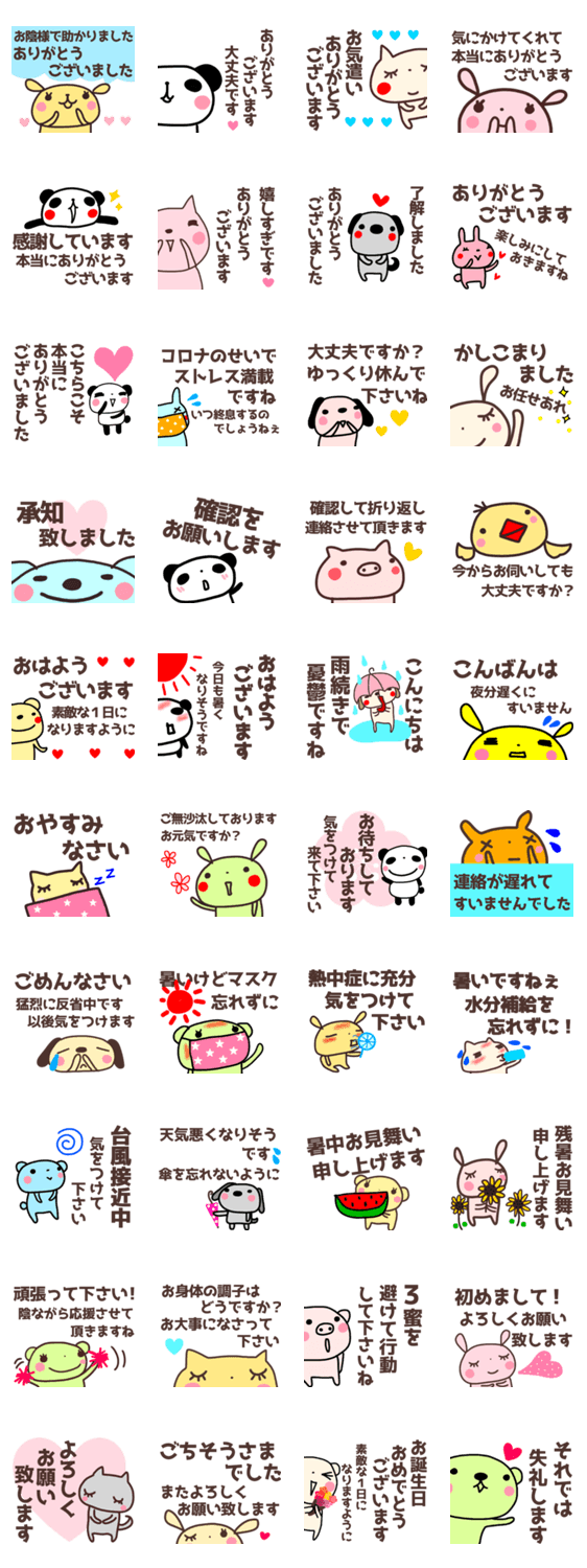 夏、コロナ、敬語、長文敬語、挨拶、返事、気持ち、スタンプ一つで気持ちを伝える、うさぎ、ネコ、イヌ、クマ、パンダ、うさた広島