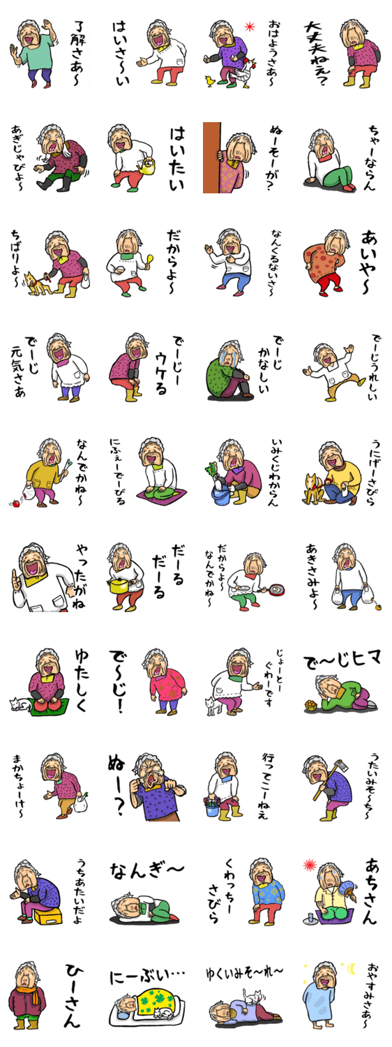 | スタンプ説明 | 沖縄県に住んでいる元気で優しいおばあさんが、沖縄県の方言、沖縄弁を喋ります。 |