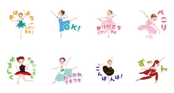 バレエを習っている生徒さん、先生、バレリーナのための、かわいい愛されるバレエスタンプです。