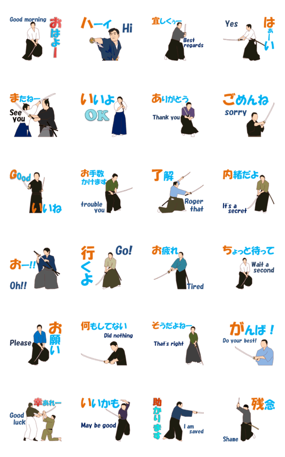 スタンプ説明 侍を題材に、面白いネタを提供