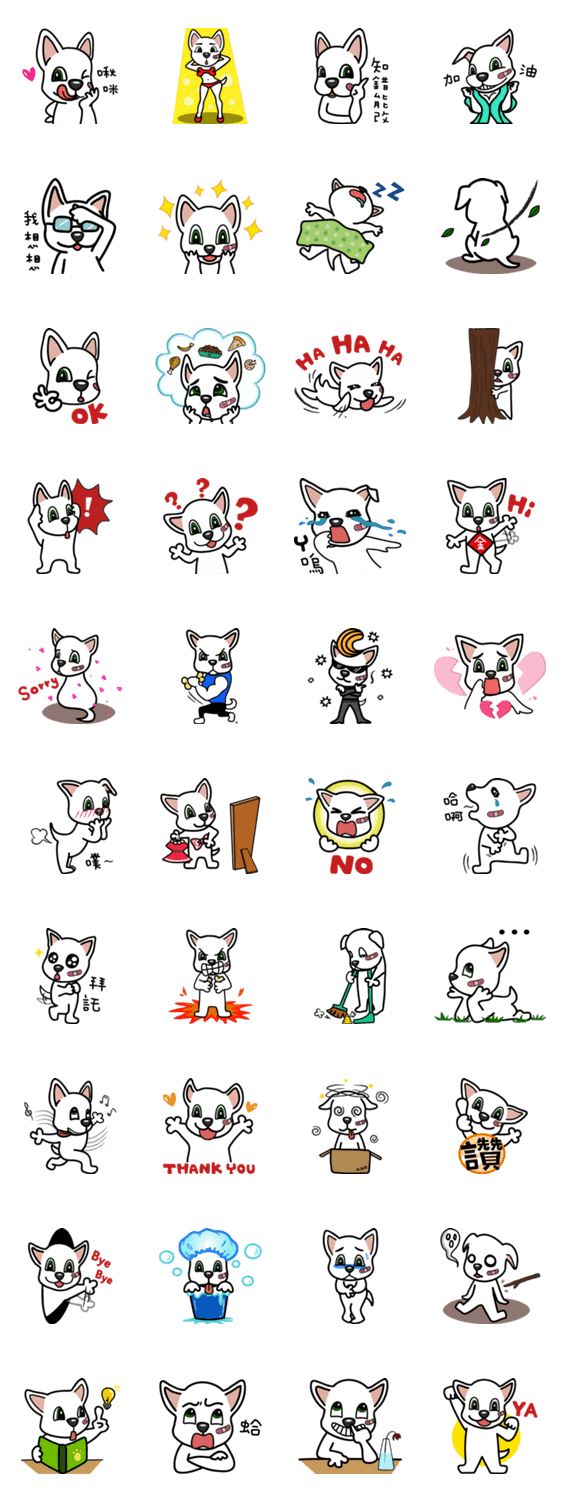 白ネコのあいうえお・・・ってるスタンプ