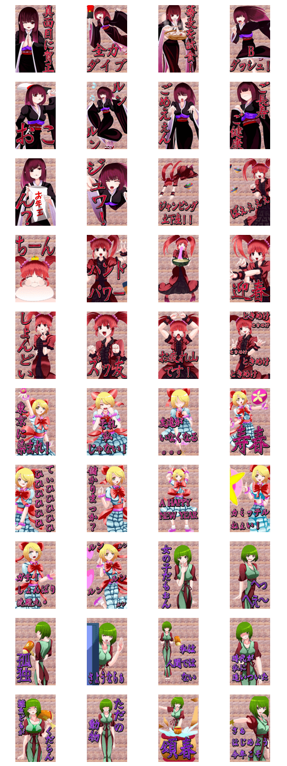 新規描き下ろし!グロかわ賀正シリーズのリアルver! 「”真紅の花よ彼岸を成就する為 孤高なれ、そして高貴垂れ”」。 ※このスタンプはトークルームで大きく表示されるBIGスタンプです。