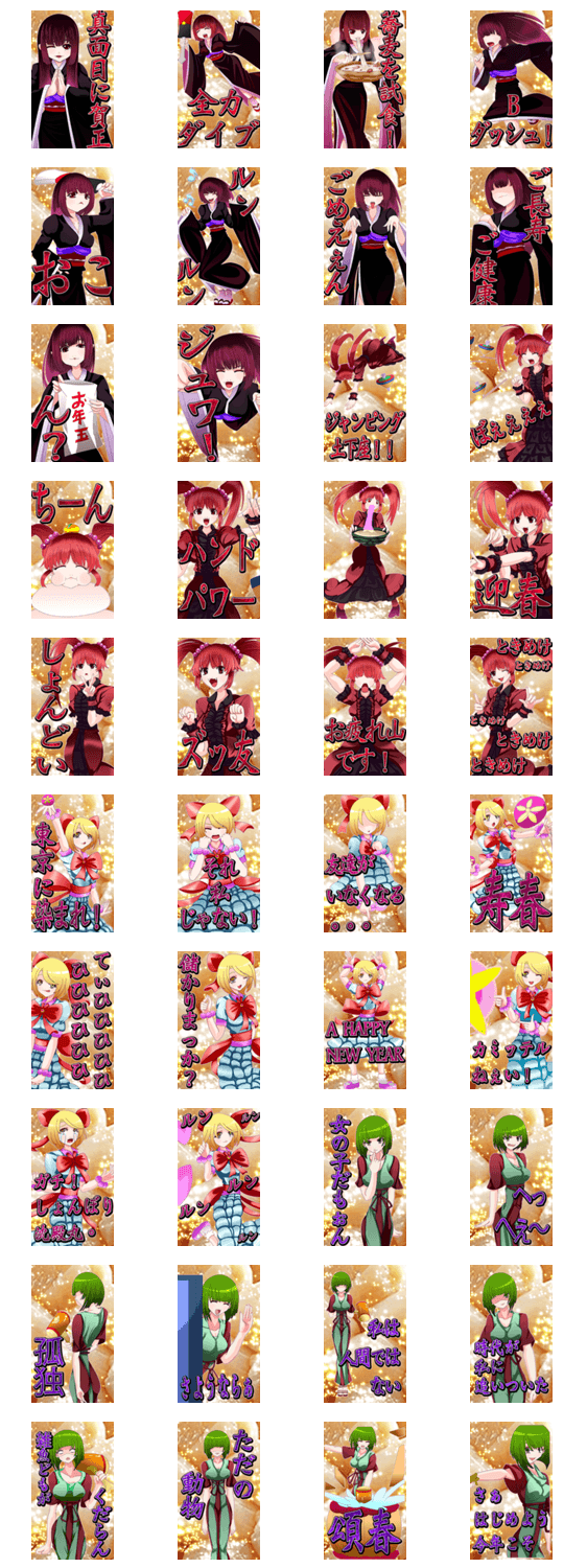 新規描き下ろし!グロかわ賀正シリーズのリアルver! 「”真紅の花よ彼岸を成就する為 孤高なれ、そして高貴垂れ”」。 ※このスタンプはトークルームで大きく表示されるBIGスタンプです。