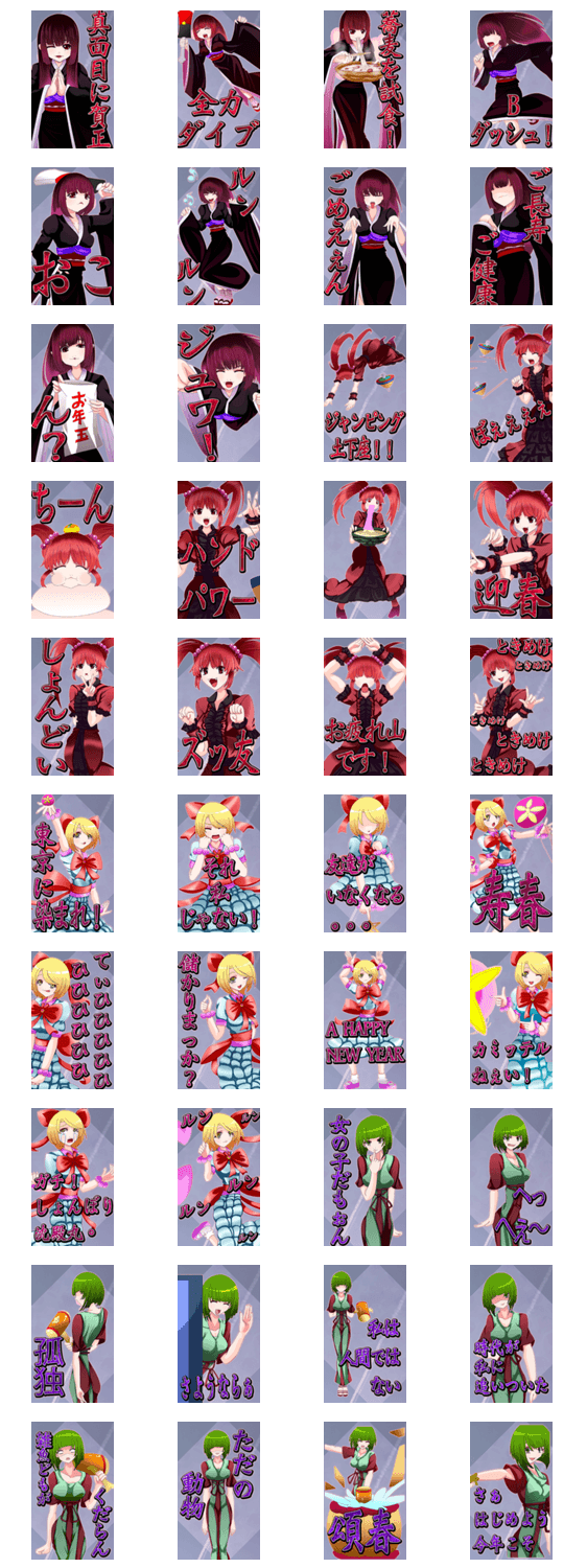 新規描き下ろし!グロかわ賀正シリーズのリアルver! 「”真紅の花よ彼岸を成就する為 孤高なれ、そして高貴垂れ”」。 ※このスタンプはトークルームで大きく表示されるBIGスタンプです。