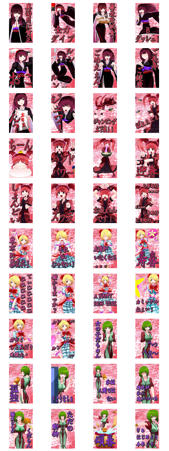 新規描き下ろし!グロかわ賀正シリーズのリアルver! 「”真紅の花よ彼岸を成就する為 孤高なれ、そして高貴垂れ”」。 ※このスタンプはトークルームで大きく表示されるBIGスタンプです。