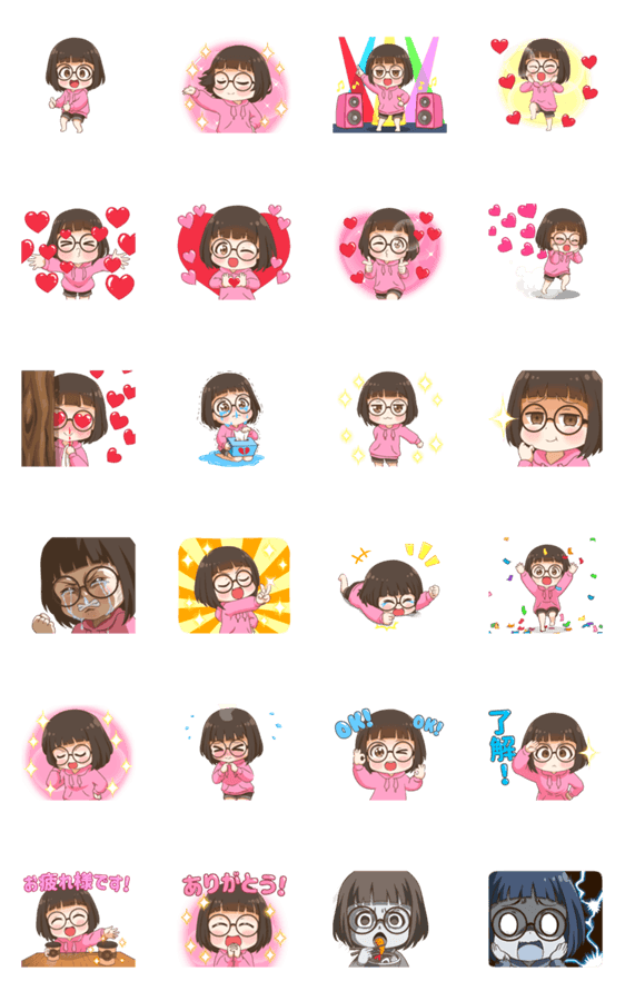 小さな女の子のかわいらしい日常表現のスタンプです。