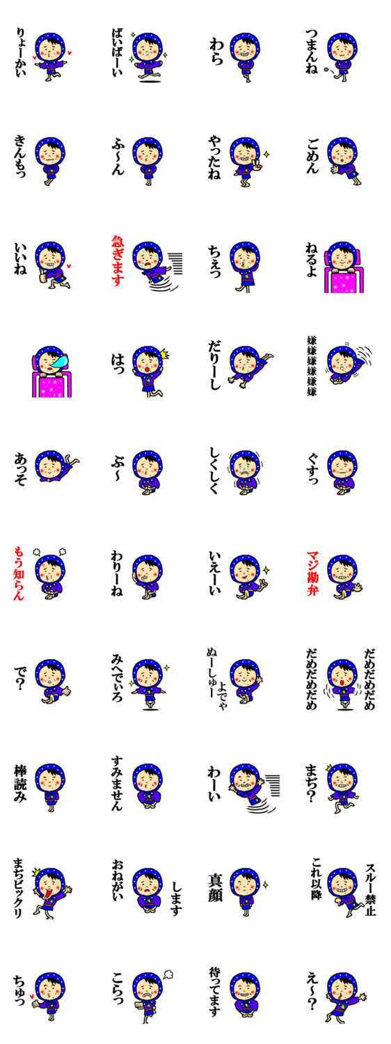 都会に出てきたばかりの田舎娘の日常会話に使えるゆるいスタンプです。なぜか沖永良部の方言が2つ入ってます。