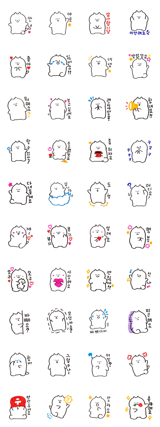 | スタンプ説明 | ふわふわもちもちボディのネコ、もちにゃの韓国語スタンプです |