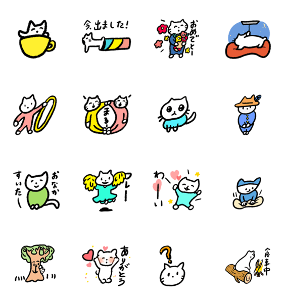 白ネコのあいうえお・・・ってるスタンプ
