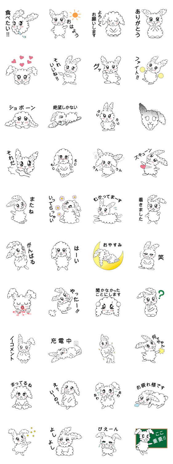 キュートでフレンドリーなモコモコうさぎのスタンプです。