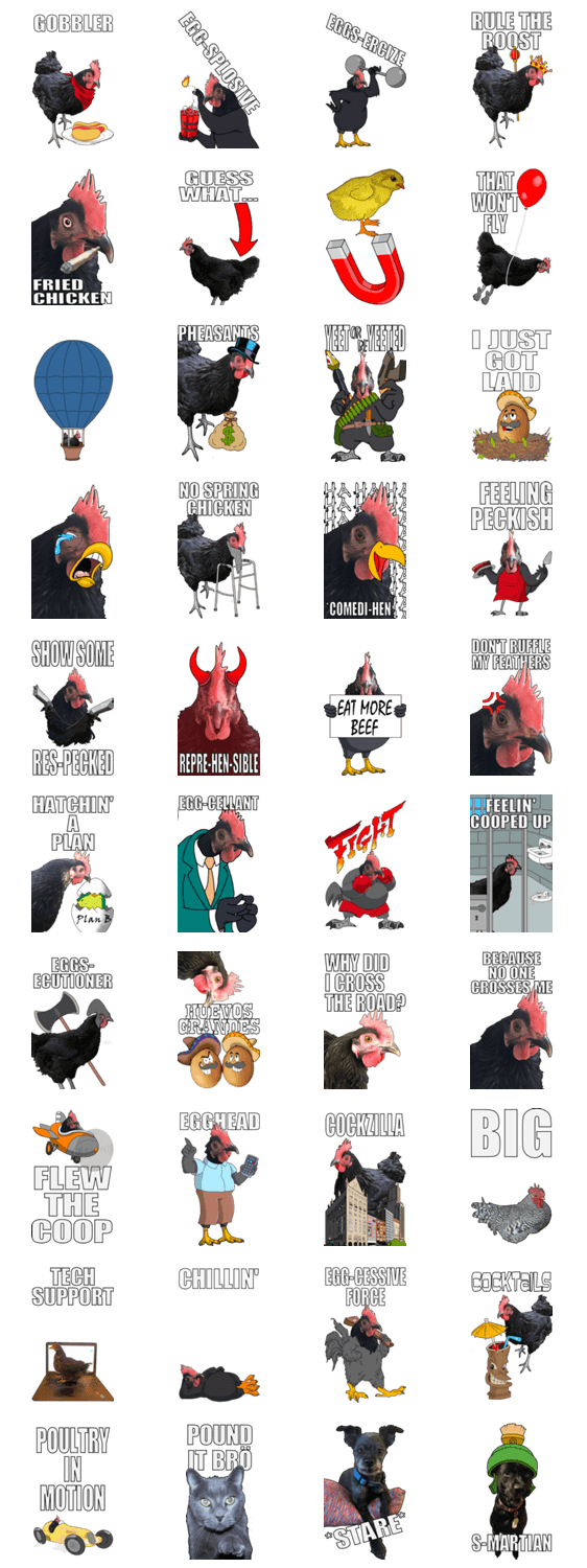 Alba the chicken, and plenty of chicken puns These stickers will show up extra large in chats.